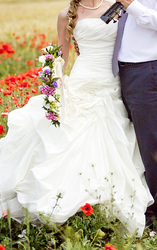 Продам очень нежное и красивое свадебное платье, покупалось в салоне.Одето один раз, в отличном состоянии, не венчанное.Размер 38-40-42(S), рост 160+каблук.Верх на корсете, очень нежно украшен бисером и камнями.