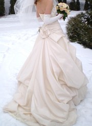 Свадебное платье, в отличном состоянии в "американском" стиле, цвета "шампань" перчатки! Торг..