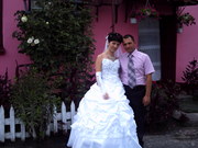 Цвет-белый, корсет весь в камнях, низ пышный. Рост до 1.70, корсет регулируется по талии невесты. Перчатки и кольца под платье входят в стоимость. фото могу вислать по електронке.