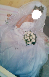 Очень красивое свадебное платье, белое, верх - полупрозрачный, украшен камнями, пышный, очень красивый низ. Р-р 44-46, мой рост 170 (думаю, что можно и выше - я обувала очень высокий каблук, и можно укоротить).