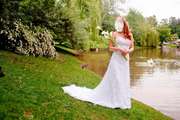 Если Вы - любительница камней, стразов и стекляруса, оно не для Вас! Изысканность, элегантность, притягательность - и все в нем одном... Длинный шлейф (подкалывается), открытая спинка, никаких корсетов и кружево, кружево, кружево! Оно развенчает Ваши домыслы о том, что в свадебном платье невозможно почувствовать себя комфортно и удобно! В комплекте - атласный пояс.