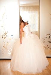 Платье 2013г. одевалось 1 раз (на 5 часов), чистое, не венчанное и очень счастливое!!! Ты будешь чувствовать себя богиней! Цвет - шампань. Материал – еврофатин. Корсет на молнии и шнуровке очень удобный, весь вышит, расшит бисером и пайеткой.